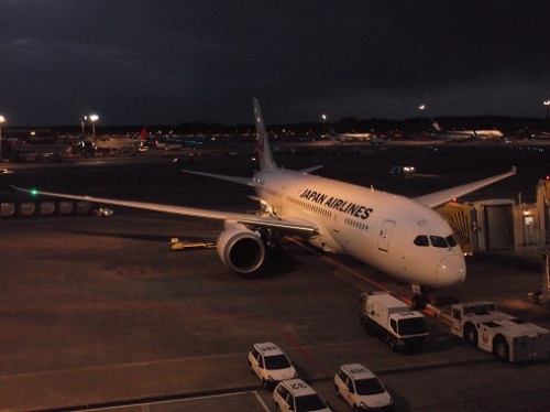 12/2「成田-サンディエゴ便」が、B787の最新鋭機で就航しました、このチャンスを逃したらB787の国際線に乗れるのはかなり先になると思い、今回は遠回りしてラスベガス入りすることに決定!サンディエゴ-ロス-ラスベガスと2回乗換となる為、ラスベガスには現地17時頃の到着予定!ラウンジで寛いだ後、大晦日なのでもしかしたら有名人に逢えることに期待して、少し早めに搭乗ゲートへ・・・取材陣の方が数名いましたが、誰に逢うことも無く搭乗時間となりました。この頃は、最近騒がれているようなB787のトラブルもなく安心してました。AA5906アメリカン航空のコードシェア便でサンディエゴに向います。優先搭乗できるステータスでしたが、そんなことは忘れていて、やたらと撮影に徹してました。2人揃って、機内はジャージ・スエット姿でリラックスモード全開です♪シートは、アメリカン航空と同じメーカー「RECALO」自動車なら憧れの有名なシート!TVで紹介されていた機内の証明はブルーやピンクのやさしい明るさです。頭上の荷物収納BOXは、丁度いい高さにレバーがあり収納も楽々(気のせいかな?)エコノミーには大変有難い! フット・ステップが(2.3段階の高さ調整)設置されてます。BOOKポケット以外に、ポケットが2つ付いているのも+ポイント!これが今までと大きく違う、「窓」大きめでシールドがなく窓の下にあるボタンで透明度調整!暗くするとこんな感じです、前席の窓と比較できたのでパチリ!怪しい人に見られないように、トイレは撮影しませんでしたが2分割にスライドする扉で、便座シートペーパーも用意されていて助かります。モニタは10インチ?通常ならビジネスクラスレベルのモニタ、ハンガーフック、外部接続端子が付いてました。テーブル以外にもカップホルダーが以外と便利!(ビジネスクラスは、更に大きい14.15インチ?のモニタ)エコノミーでは、イヤホンが主流ですがJAL-B787は写真のヘッドホン!機内は、エンジン音が大きいので音声MAXでないと聞こえ難いかな?最近のB787のトラブルを見て、この頃に置き換えると怖いですね!上空では、最新鋭機で今まで何らトラブルを聞いてなかったので、いつもより安心だったんですけどね! ←カチッ!っとクリック応援、お願いします♪♪