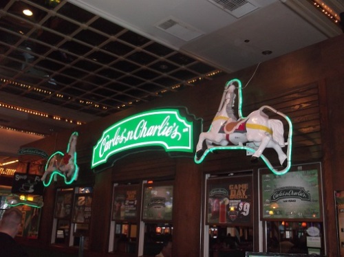 チェックイン後、遅めのランチは隣のフラミンゴホテルに移動して、前々回行けなかったメキシカン料理の「Carlos'n Charlie's」に行きました。 ここならファミレス風なので子供もOK!TR会員はカード提示で$1~2割引入口付近のカウンターには女性の足をデザインしたイスが・・・安定感抜群の足(笑)3人でメインを1つづ注文!MENUから写真に載っていたこちらを注文、値段確認しなかったのでレシートみてちょっとビックリの$30-くらい、しかも2人前以上のボリューム!スペアリブ、チキンフライ、ブリトー、オニオンリング、ポテト、チップスの盛り合わせプレート!タコスにメキシカンライスとポテト、1人では完食できませんでした。友人が注文したのは、ブリトー?どれも$15-くらいのお手頃価格です。 私には至って普通?メキシカン料理好きの方ならどうなんだろう? ←カチッ!っとクリック応援、お願いします♪♪