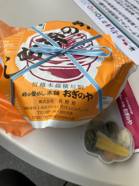国際フォーラム前のJR有楽町駅改札の隣に、横川駅前の駅弁屋・荻野屋の出店があります。これはイベント限定とかじゃなくて常設のお店。ここでは峠の釜飯が買えます。実はこのお店は飲食店の体で、ここでも釜飯を作ってますが、それは紙容器入り。毎日本店?から昔ながらの陶器の釜に入ってるのも入荷するので買ってみました。まだ横軽を往来していた頃の記憶のある身には懐かしい。もう横川駅以外での販売が殆どですけどね。