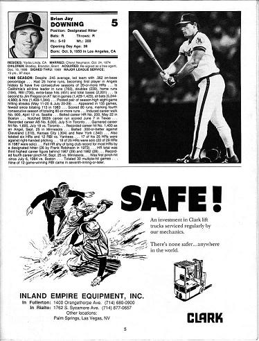 昔の話で恐縮ですが、1989年にアナハイム・エンゼルス(現ロスアンゼルス・エンゼルス・オブ・アナハイム)の試合をアナハイムスタジアム(現エジソン・フィールド)に観にいったときに買ったオフィシャルスコアブックの一頁の写真です。