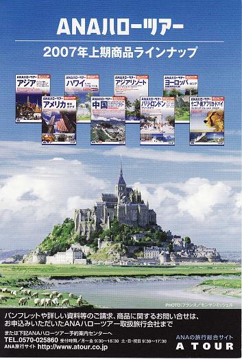 ANAハローツアー の2007年上期商品が発表されたとのことで、ご案内のハガキをいただきました。