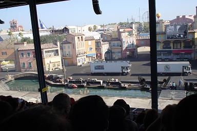 この写真は、エクストリームスタントショーの観客席にて。いかにもアメリカっぽいカースタントのショーでした。