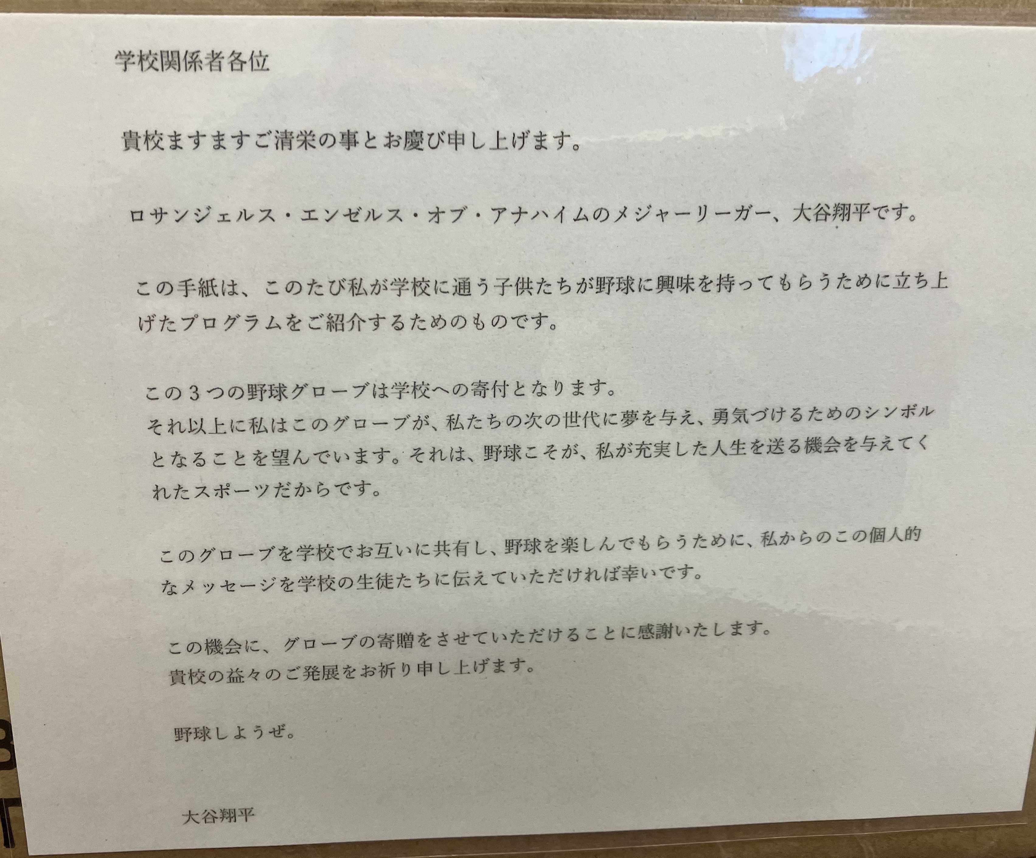 待ち時間の間に、副校長先生が「大谷選手寄付のグラブ」を見せてくださいました。