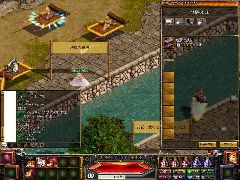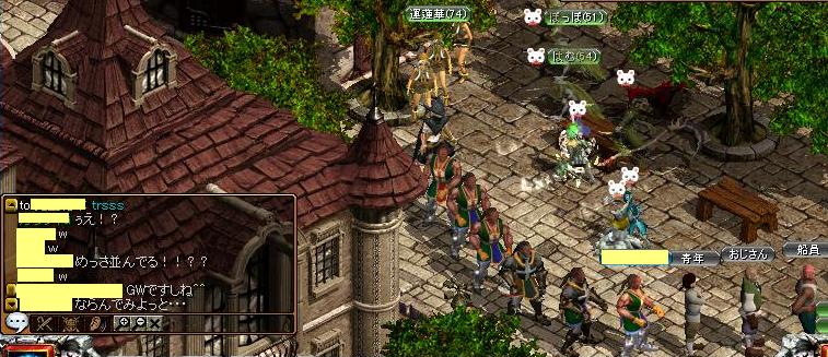 うへへ箱とか紋章買いながらアイテムショップ見てたらちょっと魔が差して、露店バイト雇ってみて「あぁこれ400円出すなら修練買えばよかtt('A`」とか後悔したり、シベリン浮輪買ってみたり、なんだっけちょろっと炎っぽいエフェクトが出る短剣買ってみたり、とか色々やってみたりしたんですが、シベリン浮輪も羽手に入れたら使わなくなるんだろうなーとか短剣に至ってはレレルが上がるにつれて新しい短剣買うから、もう使ってなかったりとか 後 悔 なんてしてないよ!浮輪最高だよ!('A`)一昨日、レンムの一部のMAPが繋がらなくなったらしく、ナルフリがガランガランだったんですよ。ガランガランなナルフリに浮かれたバカ達が一部。最初はナルフリの端っこでやって色んな人にアイテム投げつけられryのんのん、アイテムを恵んで頂いてたんですけど物足りなくなるVIPPERS(3名)ナルフリWPまで移動してやってしまいました吹き出しAA。ちなみに、一番下の吹き出しのお尻の部分は全く知らない方ですwwwwwwwwwwwwほんとにお付き合いありがとうございましたwwwwwwwwwこの状態で(もちろんお尻の方は途中で去ってしまいましたが)朝まで放置してました本当にごめんなさいごめんなさい。いつもは大人しいんですこっそり日陰で活動してるだけなんです><><><馬鹿馬鹿しい事をしてしまうのも・・・深夜であり鯖落ち後だけの面白さ。ごめんなさいごめんなさいごめんなさい多分もうしませんごめんなさい><;