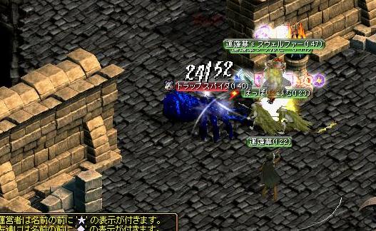 滝B5にいるトラップスパイダ。まだ私が知識弓lv110あたりの純粋なころに突撃して即死させられたイヤンな蜘蛛。まぁ110でそこにいること自体アレなんですけど^w^;;;;;テイマで再戦挑んで来ました。20分かかった('A`)だが勝てたのでおkk( ⌒ω⌒)経験値獲得10万。だが総合的にまずい。とりあえず復讐できたからおこk!