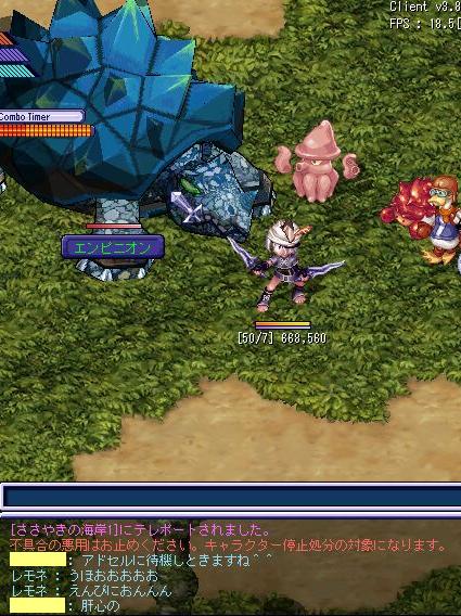 てめぇこのやろうBOTちくしょうバーヤバーヤ!!赤石はBOTが居ないってとても素敵なことなんですね・・・!そうそう赤石インスコし直したのでたまーにインする気まんまん。で、BOT。TWがBOTの宝庫ってどっかで聞いた事あったんですが、実際目の当たりにするのは初めて。・・・これほどまでにビキビキするとは・・・っ!!!!1ビキビキ原因1.横されまくりでも中の人が居ないor日本語が通じない為文句言っても意味ナス無駄な看板を出して抵抗するも無駄むだむry2.大抵のBOTは私が使ってるナヤトレイというキャラの為。3.何もしないで自動的にレレルうpしてんじゃねぇぞこのry(妬み)主に2!!!!!!!2だよこのちくしょう!ナヤトレイはBOT専用キャラじゃありません。ナヤトレイが狩場通過しても身構えないで下さい(ノД`)ナヤトレイは本来ツンデレなんだ!BOTというツールに縛られて操られて(以下妄想文のため大幅削除ちくしょーカウル出たとこのMAP、春の洞窟、水晶の洞窟、囁きの海岸、海底の洞窟(だっけ?)。私が今のとこ行ったMAP、BOTBOTBOTBOT。下手すると1MAPにBOTが5人くらい居るから困る。そしてそのBOT達全員がナヤトレイだったりするから余計困る。SS撮る前に消えるから、いや撮ってもどうも何も出来ずで泣き寝入りなんだけど、一枚だけ撮れた。一応名前隠しておいたからね☆(ゝω・)v名前ちゃんと隠す気?ないわHAGE!!!!クラブVIPPERSのクラマスが私の呼称を「BOTと呼ばないで」にしたもんだから街で知らない人に笑われたり突っ込みされまくるのは別のお話。(ノД`)