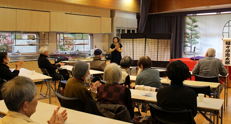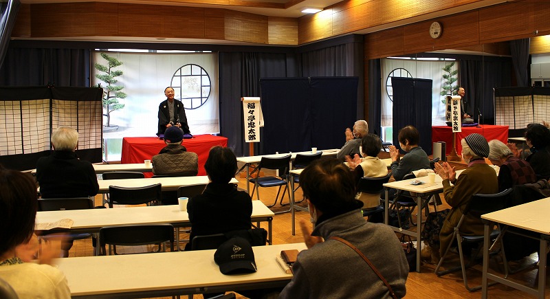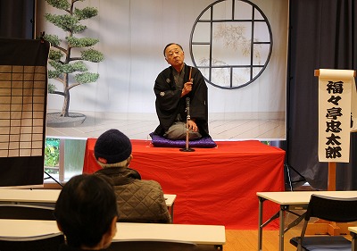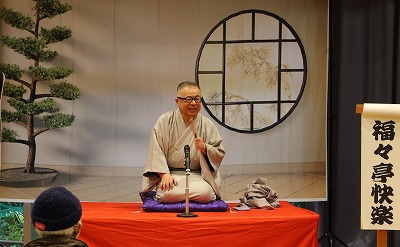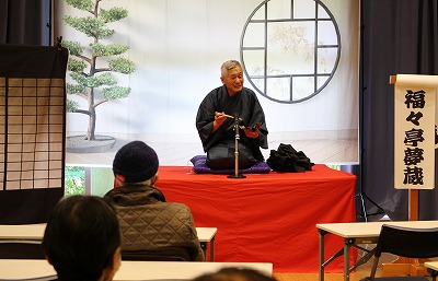 落語会当日は、風雨が強くみぞれ交じりの悪天候でしたが、20名のお客さんが集まって頂きました。