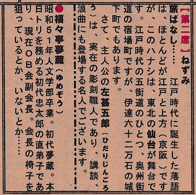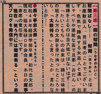 仲入り(10分)後、本日のトリは忠太郎の「鰻の幇間」です