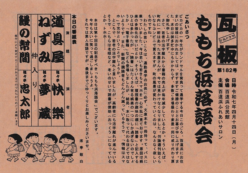 令和7年新年度最初の落語会は百道浜公民館で開催いたしました