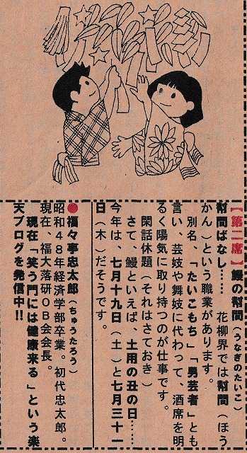 夏バテ解消「ウナギの噺」で元気を出して貰いました
