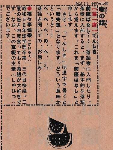 開口一番は快楽さんの「てんしき」(35分)です