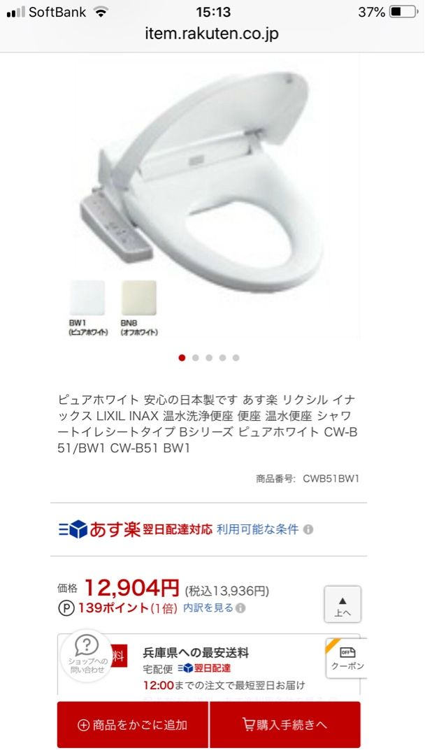 設備屋さんに教えて頂いたとおり、便座別体式で探します。
