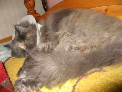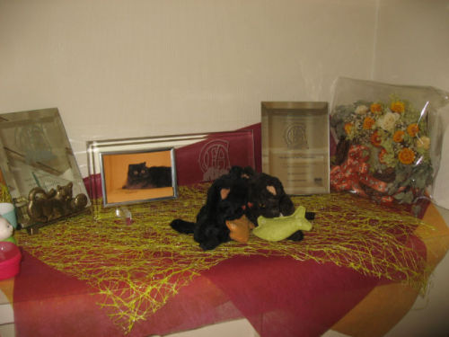 昨日、旅立ってしまいました。苦しまないで、かわいい顔のままで。。。首が上がらなくなってから、ずーーとステロイド飲んでいました。よく13歳まで生きてくれて、有難う。でも、もっと一緒に居たかった。マンションから、落ちたこともあったよね。とうとう我が家も3匹になってしまった。アズ君も、ただいま腎臓病。腎臓病に配慮したドライフード食べさせていたのになぁー。クリママの横で、一緒に寝てくれたにゃんこが、皆旅立ってしまった。あーあーーー。