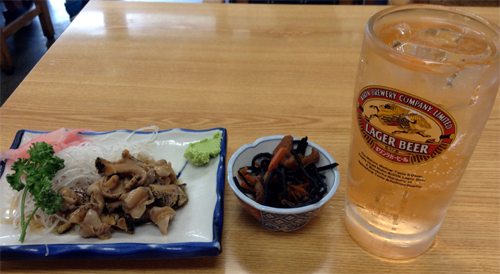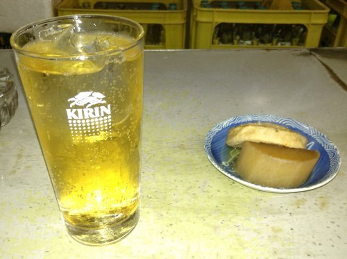 先日休みでラーメンでも食べに行こうと思い川崎駅に向かったのだが、駅に着くとあまりの暑さで思考回路が停止していたようだ。意識が戻ると「丸大ホール」の暖簾をくぐるところだった。ここにもラーメンはあるのだが、別にここでラーメンを食べる必要もないので、梅サワーとつぶ貝を注文した。 つぶ貝は刺し身かと思ったのだが、残念ながら煮付けである。まあ、いいか。(この夏は暑すぎて頭脳がまともに機能していない)昼食の予定だったので、ちょっとボリュームのあるアテを頼む。野菜炒め。まだ真っ昼間でリーマン風の客が多いので、食事客が多いのかとおもいきや、皆さん一杯やっている。どういう仕事をしているのだろうか...梅サワーをやっつけた後はウーロンハイ。 やはり昼から飲む酒は旨い。調子に乗って、いつもの呑兵衛仲間にメールを入れると、新杉田まで出張してこいとのこと。「丸大ホール」を早々に切り上げて、京急を飛ばして新杉田に向かった。さすが新幹線規格の京急である。とても快適に新杉田に到着。昔の京急は横揺れが半端ない電車であったが、今の京急の快適なことといったらない。新杉田ではジェントルマン他2軒をはしごしたが、特筆すべきものはなかったので写真もない。ただ、京急新杉田とJR杉田の間は意外と昼飲み営業している店が多い。今回は気がつけばいつの間にやら昼食が夕食と合体してしまっていた。よく意識を失う日である。今度休みの日にまったりと杉田で昼飲みでもしてみるか...