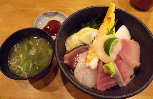 昨日、少々小田原まで足を伸ばす必要があり、昼時だったのでついでに「RYO」に寄ってきた。今回は12時40分くらいにはお店に入ったのだが、既に「まかない丼」は売り切れ。残念だが無いものは仕方がない。平日限定「魚の日替わり定食」は、隣のおじさんが食べていたのだが、どこでも食べられるサバ塩定食だったので、またまた、「海鮮ちらし」(980円)を頼んだ。ネタは前回と変わらない。1ヶ月くらいでは、揚がる魚の種類に違いは出ないのか金目の刺身くらいは入れて欲しいところだ。前回は結構感動したのだが、今回は特に感動しなかった。何故だろう。やはり人間慣れてしまうとダメなのだろうか