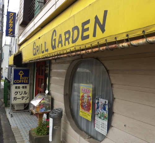 神奈川区の元祖大盛りの店「グリルガーデン」。麓の「みのかん」や「三国屋」にはよく訪れる私だが、このお店は丘の上にあるので、なかなか行く勇気が出ないお店。昨日はやたら腹が減っていたので、たまには行ってみようと思い数年ぶりにチャリで出かけてみた。前回行ったのは、確か子供が中学生の頃だったので、既に7・8年経っている。何年経っても健在な「グリルガーデン」。ターポリンの黄色い看板が目印だ。昔はなかった灰皿が置いてあるまあいいか。カウンターに座って懐かしく辺りを眺めると、「禁煙」の張り紙が。以前来た時までは喫煙OKだったはずだが、いつの間にやら禁煙になっていた。聞いてみると、タバコを吸わない女将さんだが、キッチンで仕事をしているとタバコの煙が換気扇で全部自分の方に来てしまい、調理しているのかタバコを吸っているのかわからなかったので禁煙にしたとのこと。そりゃ吸わない人にとってはキツイ。常に咳払いをしている女将さんを見て、タバコにやられたかと思った次第である。貴重なお店なので、身体に気をつけてまだまだ頑張って欲しい。注文は当然、特製ランチ(600円)。相変わらず何が何だかわからないランチプレートである。解説すると、ハンバーグ・目玉焼き・チクワ(チワワではない)の天ぷら・鶏の天ぷら(デミソース)・味噌汁にご飯大盛り(これが標準サイズ)。さすが「グリルガーデン」、いつもどおりのデカ盛りだ。大盛りに慣れていない方はこういうお店に来ることはないだろうが、あまりお腹の調子が良くないときは、ご飯少なめでお願いした方がいい。神奈川区でがっつりランチを食べたい時は、ここか「秋葉屋」が鉄板である。帰りはお腹が苦しいが、下り坂なのでNo problem!行くのは大変だが、苦労をしてでも行く価値のあるお店だ。