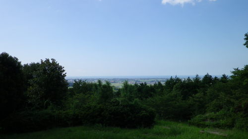 九州北部は、今日、梅雨明した。午前中、市役所で用事を済ませ、杵築へと向かった。その時点で、気温は34度。クーラーの苦手なぼく、さすがに、エアコンを点けへんと、最近は我慢が出来ない。一日、エアコンの効いた車内にいると、家に帰った時、気分悪なるんやけど。途中、何回かトイレ休憩を取りながら、杵築の市街地から少し外れた所にある、ギャラリーとーちきへ行った。今日は休みやったけど、中に入れてもらい、作品展のチラシとハガキを置いてもらった。帰りにひな祭りの時に、一度行った作り酒屋を捜すんやけど、もう何ヶ月も前になるので、どこをどう曲がればええのか分からへん。確かこの辺やった、と思う交差点を探すんやけど、記憶てええ加減なもんで、特に歳取ってしもたからか、まったくその交差点の目印が分からへん。で、延々、道路を走るんやけど。このまま走り続けたら違うやろ。どんどん山の方へ向かって行く。それで、前も行き過ぎて間違うて、遠くに煙突が見えたのを思い出して、確かここまで行って、戻ったら、右手の奥の方に煙突が見えた筈。と、煙突を探したら。煙突があった。右手の方とずっと思い込んで探してたら、間違うて行き過ぎて、戻って来た時に右手の方に見えたんやった。原酒の文字には、異常に反応する嫁はん。そこは執念で見つけよる。ま、無事にたどり着いたんやけど。さすがに今日はしんどいので、国東回りで帰るのは止めて、10号線を走った。宇佐市内に入った時に、嫁はんが、麻生方面へ行ってみたいといい出して。表示に通りに左折して行くんやけど、なんやこの道、見た事のある場所へ出たと思たら、宇佐別府道路の院内の降り口。院内へ行ったら遠回りになってしまう。院内入り口から宇佐別府道路に乗り、終点でまた麻生方面へ左折。でも、途中で、道が分かれてる。どっちへ行けばええのか表示もない。ぼくのカーナビには、もちろん道路の標示もない。適当に右折したら、田んぼの中をずっと走ってる。ここはどこやねん。このまま家に帰れるんやろか?田んぼの中てどこも同じようにしか見えへんし。遠くに佐川急便の軽が止まっていたので、そっちへ行き後ろをついて行った。しかし、また4叉路で左に曲がり、狭い民家の間を、光岡城跡の看板を見つけたので、行ってみる事にしたけど、看板通りに進むと車が離合出来へん狭い道を進む。広い道に出た所で、左の方にいる警備員の人が右へ行けと手を振る。その通り行くと、光岡城跡の入り口があった。何で、ぼくらここへ行くと分かったんやろ?急な坂道を上り、駐車場に車を止めたけど。えらい傾いてるがな。先客、車が一台あったけど、人はいそうにない。歩いて坂を上ると、開けた場所に出た。城跡やいうから、石垣とかあるんか思たら。どこにも見当たらへん。舞台みたいな台があったので、そこへ上がると、宇佐平野が一望出来る。眠くなったので、日陰に車を止めて少し眠るつもりやったけど。なんや寝そびれてしもた。