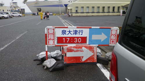 昨夜は、風呂はもう終わっていたので、シャワー室に行き、シャワーを浴びた。シャワー室は出港から入港まで使える。さすがに嫁はんは、もうぐっすり眠ってた。ま、トラックドライバーの人が持ち込んだ焼酎を、薦められるまま結構飲んでたもんね。5時前に目が覚め、顔を洗って食堂へ。嫁はん朝がゆセット、ぼくはスープセット。来た時も同じ席、帰りも同じ席。5時半、部屋に戻り荷物を持ってエントランスへ。ぼくは、階段を下りて車輛甲板へ。車に乗り込み着岸を待った。定刻通り新門司着。やがてゲートが開き、スロープが降りて来る。こんな光景は初めて見た。家に帰り着いたのは、7時過ぎ。帰った途端眠くなって昼前まで眠ってしもた。今回も色んな人に助けられての里帰りライブでした。みなさんありがとうございました。