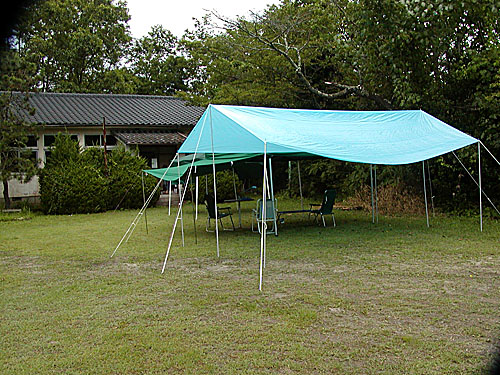 夕ご飯の用意は嫁はんがして、ぼくとY根君は残った網を使って廊下の網戸作り。