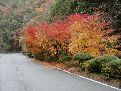 先週の日曜日の山の音楽舍の下の道路の紅葉。