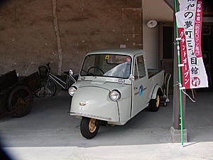 ソフトクリームを食べた店、何軒かの土産物屋とか入った長屋風の建物。
