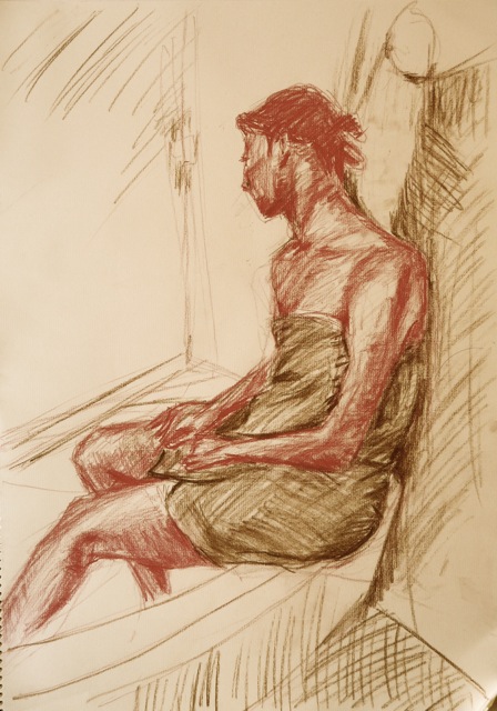 パステルペンシル。写真から描いたもの。焦って描いたので粗い。でも構図的には満足。なんとなく、クロッキーとデッサンってちがうんだな、と思った。デッサンももう少し磨かなくちゃ。気に入ったら押してね。