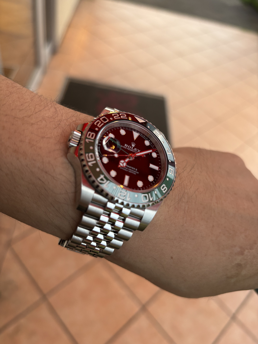 一ヵ月以上ぶり^^;)みなさん、お元気にしていたでしょうか?私は、何と6月上旬にこじらした風邪が原因なのか、2週間近く会社を休んだ挙句、久々にメンタルを崩して、休職中です^^;)そんな中、手取りも2/3になるというのに、どうしても欲しくて買ってしまいました。2009年にハワイのROLEXアラモアナショッピングセンター店のBEN BRIDGEで購入したサブマリーナを下取りに出して、手に入れました。何故このタイミングなのか? それは、2年前に購入したΩシーマスタが、またしても故障、バックルが開かないという不具合が生じたからです。その前のΩのシーマスタアクアテラもちょっとの振動でベゼルが回転して、いまいちでした。アクアテラは損切で売却しましたし、今のシーマスタもあと3年ローンが残っていますが、修理が終わったら、処分しようと思っています。両方を買ってハッキリわかったのは、やはり王者はROLEXで、Ωは、質が悪いということです。ていうふうな話ができるなんて、平和でありがたいと感じています。イスラエルによるガザ攻撃、イラン攻撃、おまけにアメリカも参戦、そしてウクライナ問題。当事者たちはホント悲惨でかわいそうです。罪のない国民や女性、子供たち。私の休職の復活も希望しますが、ガザやウクライナの復活も実現しますように!