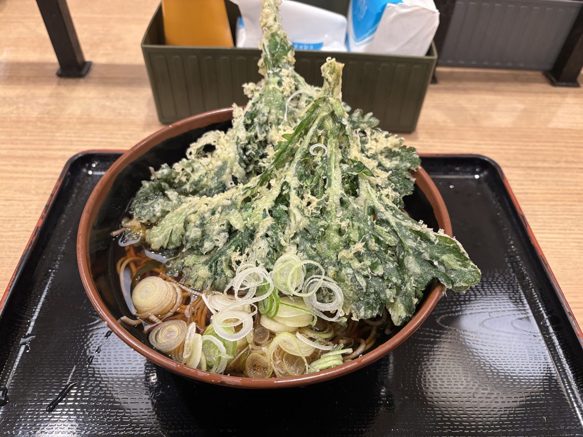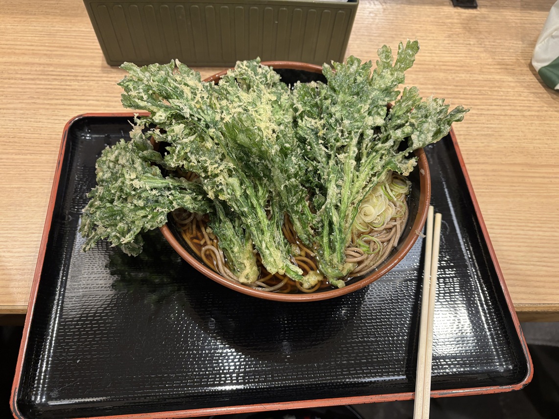 おっさんだから、TikTokでもなく、インスタでもなく、FB見てる。FBで、立ち食いそばうどんの会に入っていて、無性に春菊天が食べに行きたくなって、残り1日の有給を半日使って、名古屋までうんまい!そば大盛り無料!!!