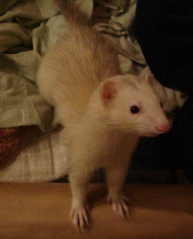 あたちの名前は“あんこ”デスぅまだ四ヶ月の ちびっ仔フェレママさんが『がっしゅく』ってヤツでお家にいないので熊吾朗くんと、ねねしゃんのおうちに、おじゃまちてるのねーーえ、なにちてるのぉぉあしょんで、あしょんでぇ~~~ いやーー。元気なベビーだぜ!!!すごく噛む噛む orzフェレットお預かりネットワークに登録してから初めてのお預かりデス。一週間お泊りで、8/6には帰宅してしまうの。しかし、熊吾朗とねねにこっぴどくバトルされたので、殆ど隔離してますよーー。ベビーっの毛ってば、フワフワァァァーーー可愛くってすりすりシテマス。三本いると、それなりに手間は増えるケド、楽しさも三倍ね~(嬉)