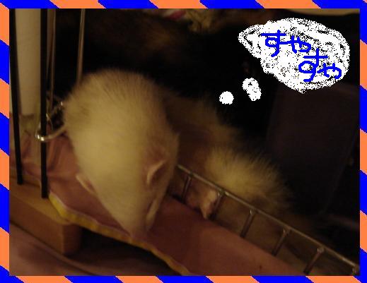 僕にだって悩みくらいあるんだよぉ......ママさん。(下記のフレームクリックで動画スタート) まいったなぁ~~あっ、あれっ??何を悩んでたんだっけ??眠くて判んなくなっちゃったから、マァいっかぁいよいよ、私が開催のクリスマス会の、その日が目前になりましたっっっ総勢8本のフェレットが大集合です。(は大人7名+お子様1名です。)土曜日にに買出しに行くのだっ分量とか、食事の内容とか見当がつかないっっ。熊吾朗じゃないケド、マァいっかぁなるようになるよっ!!