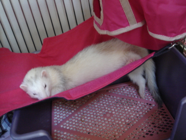 なんと、 くぅあいさんが東京にいらっしゃっていたので、本日、お逢いしてきましたっっもちろん、熊吾朗とねねを連れて初対面なのに、フェレット話に花が咲きまくりっおまけで世間話も……あっという間に時間がすぎてしまったのでビックリしちゃいました。以前、ブログでも紹介した赤いペットキャリー(キャスター付き)を御所望だったので、購入し、お渡ししてきました。うふふ。おそろいだわぁ♪そして、なんとお土産まで頂いて……重たい荷物になってしまったでしょぅにぃぃ。感謝×2 でございます。 お次は、アンモナイトみたいなねねさんでぇ~すまだ、お腹の毛が生え揃っていないのでチョット寒そうねぇ~~ 最後は、前日のブログのお題についてあたくちが考え付いた幾つかをご披露します。あーー世代がバレバレだわっ(汗)【ビートたけし】 冗談じゃないよっ【時代劇風 のれんを通って】 『じゃまするよっ』【ピンクレディ】 ウ~~ウォンテッド!!【近所のおじさん風】 いやいや、お気使いなくお後がよろしいようでっ(逃~~~)