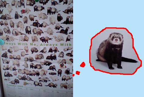 今年のクリパは諸事情によより開催せず…となってしまいでも、めげずに次回のイベントは事前に皆様のご都合を伺ってから企画したいと虎視眈々と・・・って感じですところで、楽天通販でフェレットフードを購入したら2008年のカレンダーを頂いちゃいました広げて見ると ナント『螢ちゃん』がおるではなですかぁぁ(YAGAMYさん宅のご子息です)直ぐ螢ちゃんだって判ったんですよぉ(自己満足)早速、飾っちゃいましたでも、こんなん眺めてたら何にもできないどの仔もプリチーなんです