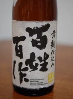 千葉の実家に行ってきました。着いて飯を食べましたが、車の運転があるのでお酒が呑めません。 弟はガバガバ呑んでやがる・・・いいなぁ~。帰ったら呑んでやる!!と心に思い、先程帰ってきて呑み始めました。(笑) お腹はいっぱいなので、焼酎だけで呑んでます。 今日のお供は写真の百姓百作です。フタを開けたら、焼酎のいい香り♪もう中毒ですね。あはは。。。 百姓百作は写真の1杯で終わりです。その後は、富乃宝山でGO!。夜は長い?