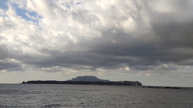 暫しウダウダしていたら利島→新島→式根島向け_式根島向こうに神津島は天上山が見えてきてますな