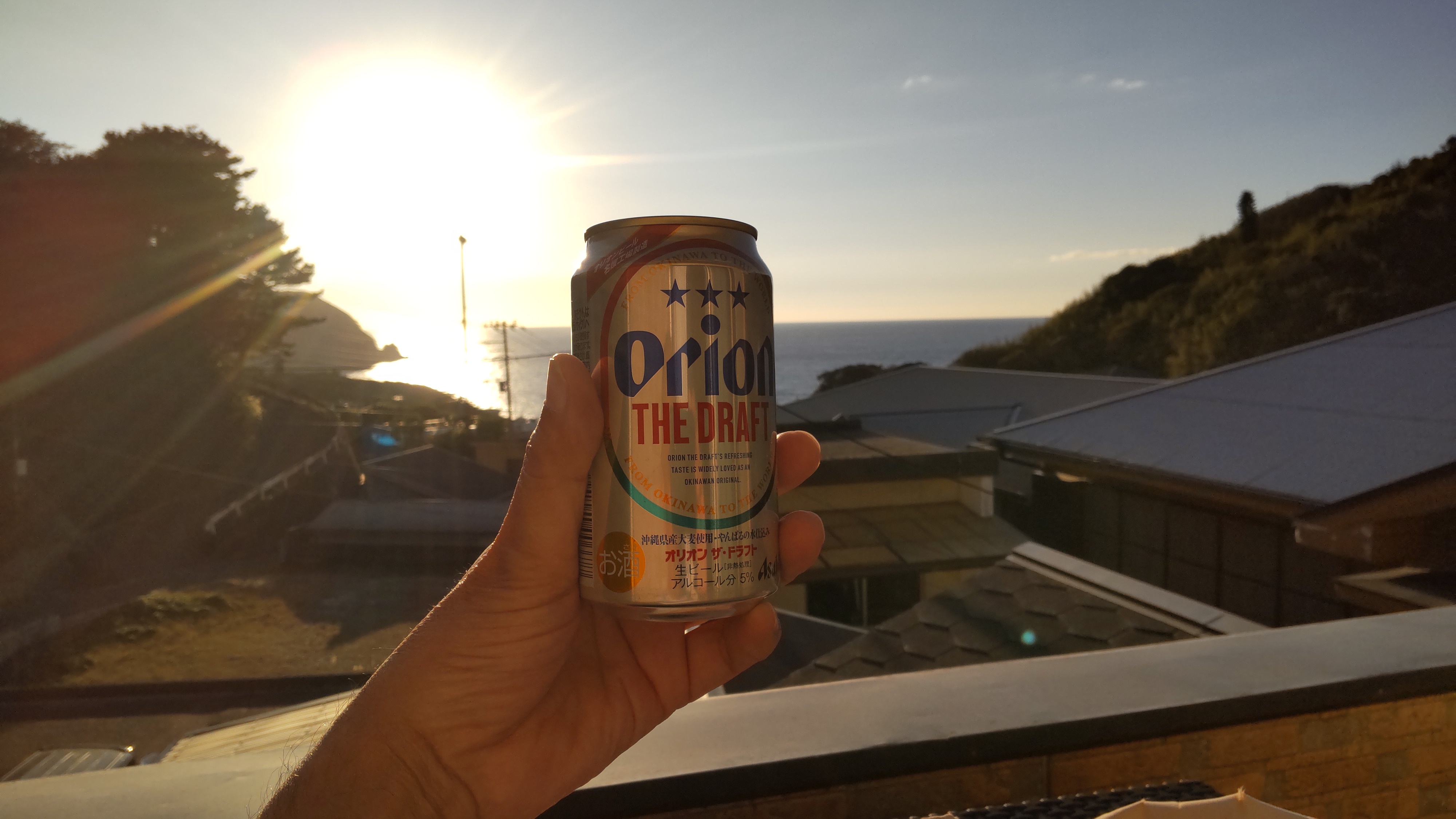 宿から見える前浜向こうに沈むサンセットを堪能して