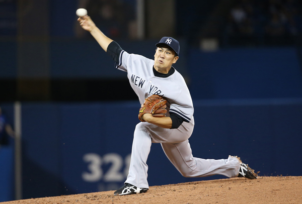 【ミシガン州デトロイト23日(日本時間24日)発】ヤンキースの田中将大投手(26)が、今季初の中4日でタイガース戦に先発し、6回1/3を3安打1失点、速球のMAXは150キロを記録した。試合開始時の気温が0・6度の極寒、そしてメジャー屈指の強力打線も吹き飛ばす熱投でチームの逆転勝ちを呼んだ。同点でマウンドを降り、3勝目はつかなかったが、エースとして存在感を発揮した。 チームはタイガースに3連勝となったが、試合後の田中の表情は厳しかった。1―1の7回一死後、二塁打と四球で一、二塁と一打勝ち越しピンチを迎えた。絶対に抑えるという気持ちだったが、投球数は94。2番手のウィルソンにマウンドを託すことになった。「もちろん数字だけで見ればね、1失点で…リリーフに助けてもらいましたけど、1失点で終わることができましたし、チームも勝ったので、それが一番ですね」。自分に言い聞かせながらも、悔しさがにじみ出た。これもエースの自覚だ。 内容は見事だった。試合中に雪が降った前日に続き、試合開始直後の気温は0・6度、最高でも3度という極寒のマウンド。「こういう天候ですし、初回の入りはちょっと、自分の状態とかも含めて慎重になった部分はあった」こともあり、初回は先頭のゴースにいきなり左翼線二塁打を許した。キンズラーの二ゴロで一死三塁とされ、3冠王・カブレラとの初対決。しかし、制球が定まらず四球。続くV・マルティネスの左犠飛で先制点を奪われた。 ここでズルズルいかないのが田中だ。メジャー屈指のタイガース打線相手に攻めの投球だ。フォーシーム、ツーシーム、カーブで積極的にストライクを奪い、追い込めば、スライダー、徐々に制球が定まってきた宝刀・スプリット。左打者への内角のボールゾーンからストライクに入るフロントドアも決まった。 2、3回を三者凡退に抑えた4回。二死後にJ・D・マルティネスには左翼越え二塁打されるも、セスペデスには高さを変えたスプリット2球で追い込み、最後もスプリットで空を切らせて3球三振に仕留めた。 田中も「相手がそんな積極的に最初は打ちにきてなかったんで、以降、もっと大胆にストライク取りに行こうかなという感じで投げていけた。それがズルズルいかずに済んだところかなと思います」と振り返った。 5回を三者凡退に抑えた6回、再び上位打線との対決となったが、田中の攻めの投球が冴えた。先頭のゴースはカウント2―1から4球連続フォーシームで押し、最後は外角148キロで空振り三振に打ち取ると、続くキンズラーは粘られたものの9球目、直球で一邪飛。そしてカブレラとの3度目の対決は初球、外角カットボールがやや真ん中に入ったが右飛に打ち取った。 メジャー屈指の打線に対し「いいバッターはいいバッターなんで、神経使って投げましたね」と振り返った。イニングごと、あるいは打者ごとに軸にする球種を変えたように見えた。繊細かつ強気に攻めた田中に軍配が上がった。 駒大苫小牧高、仙台が本拠地の楽天での経験で寒さには慣れているものの「体の動き方も(前回に比べて)やっぱ全然違いますしね。体全体の動き方っていうのはちょっと難しかったかなっていうのがありましたね」と、さすがに影響はあったようだ。投球フォームもややバランスを崩す場面もあった。 登板を重ねるごとにコンディションを上げる田中。米メディアから5失点KOされた開幕戦との比較を求められると「オープニングデーは振り返ることはない。もういいでしょ」とクールに切り返した。立ち止まることも振り返ることもない。高みを目指し前へ進む。