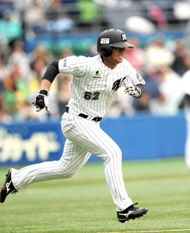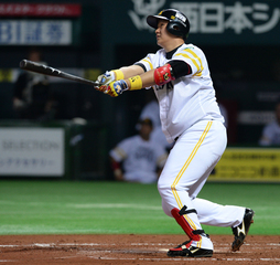 ◇パ・リーグ ソフトバンク10-1楽天(2015年5月10日 ヤフオクD) 勢いが止まらない。4回1死一、二塁、ソフトバンク・李大浩(イデホ)が戸村の投じた初球、甘く入った138キロ直球を捉え、左中間最深部のホームランテラスへ3ラン。4試合連続となる10号で日本ハム・中田とリーグトップに並んだ。 5月に入ってから6発目と絶好調。35試合目で2桁到達は、日本では12年の46試合目を上回るスピードで「野球をやっていて今の状態が最高」と舌も滑らかだ。韓国・ロッテ時代の10年には9試合連続本塁打を記録している大砲は「ホームランも出てヒットも出ている今の方がいい」と笑顔だ。工藤監督は「チームの中心にいる選手なので、このまま続けてほしいね」と目を細めた。 打率・221と低迷していた4月までがウソのような猛打だ。好調の理由は打撃フォームの修正。打席で足を高く上げ、ゆったりとタイミングを取るようにしてから調子が急上昇した。試合前の練習でも、足の上げ方に意識を集中している。日本ではこれまで12、13年の24本が最多だが、今季は143試合に換算すると41発という快調なペースでアーチを量産している。 好調の助っ人が引っ張る打線は今季最多15安打で10得点。3カード連続勝ち越しを決めた。李大浩は韓国で06、10年に2度獲得している本塁打王について聞かれて「早い早い。まだ100試合以上残っている」と笑ったが、日本では4年目で初の4戦連発で確かな自信をつかんでいた。