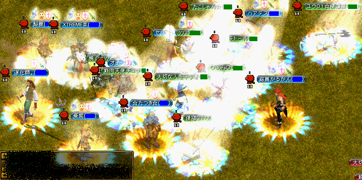 ギルメンと話していたらこんな時間になってしまった、うん話していた、というより雑談でしたけどねww 1つに何で最初からキャラの性別が決まっているのか、とかw 結構盛り上がったりwwwwヨカッタヨカッタw本日Gvありました、最後に出たのはえーっと・・・。序盤は勝っていましたけど、一度崩れて立て直す作業中にまたパタパタと逝ってしまい そこから倒し倒されの混戦でした結果的には負けてしまいましたけど 火力さん 支援さん 頑張ってました範囲の私は・・・凹○コテッ 鎧がNでは限界があるようで、、、効率にした方がいいのかな2回も逝ってしまうとは。。。まだまだ全然ダメですGvの感覚が・・・ね言い訳言い訳w今日、明日は休日なので狩場が混むでしょうし週末は露店日です(今勝手に決めた出来たら秘密だけでも行きたいのでポタ出しおね^^頑張りましょうね小言、Gvのダンゴ状態を打開するには吹き飛ばすのが一番か 〆
