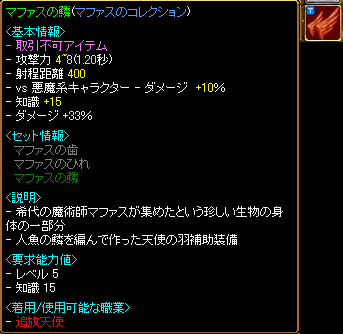 物理槍とかやってみたくなってきた・・・ので、検討中ー知り合いの誰かに聞いてみますかねwwww知り合いに物理さんおったかな・・・。装備が何一つないんですけど。さて少しまじめに狩ってみたドロップ結果↓↓↓耳のhp90↑拾ったことない。。。。凹○コテッUは1つも出ませんでした本日のお買い物ー最高補正だったので衝動買いしてしまいましたそしてまた金欠・・・orz物理まで遠そうです 11本目おめ^^