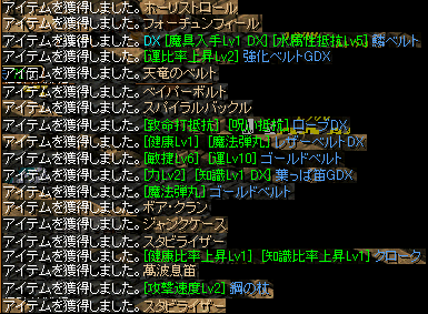 狩りをすればこの言葉の連続水色、茶色アイテムは・・・うん。 多忙で更新もInも疎かになっております見てる人いないしいいよね^^次回はペットで何が出たかを紹介します(予定)ネタがなすび で終了。〆