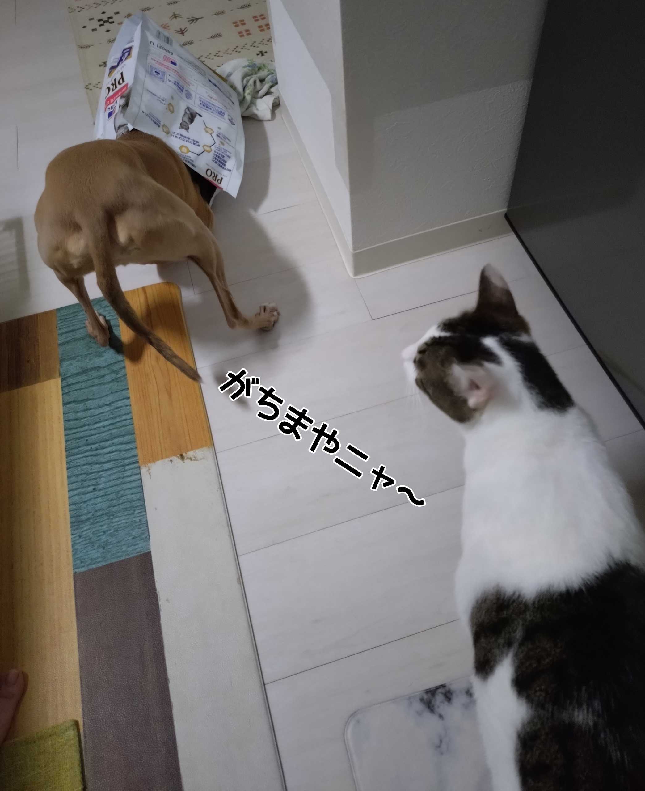 がちまいティナワン♪2ニャンの空っぽフード袋に頭突っ込み隅々👅舐め舐め中(๑´ڡ`๑)😹😹がちまやぁティナワンの可愛いおチリ🍑😹😹ソロリ通らないと、🐶怒る時があるニャ〜🙀🙀ガツガツ早食いのがちまやぁ〜~ティナワン🙉早食い防止のフードボウルでちょいゆっくり😹😹食べ終わったら、グースカピー🐶💤💤💤がちまやぁティナワン…口元フード気付かず爆睡😹😹デヘヘ👅 食っちゃ寝 最高寝ーーー🐶♪がちまやぁ~ティナワン 得意の怖いよ寝😹😹今宵もグッニャイト🌃みんニャいい夢みてニャ〜~😻😻
