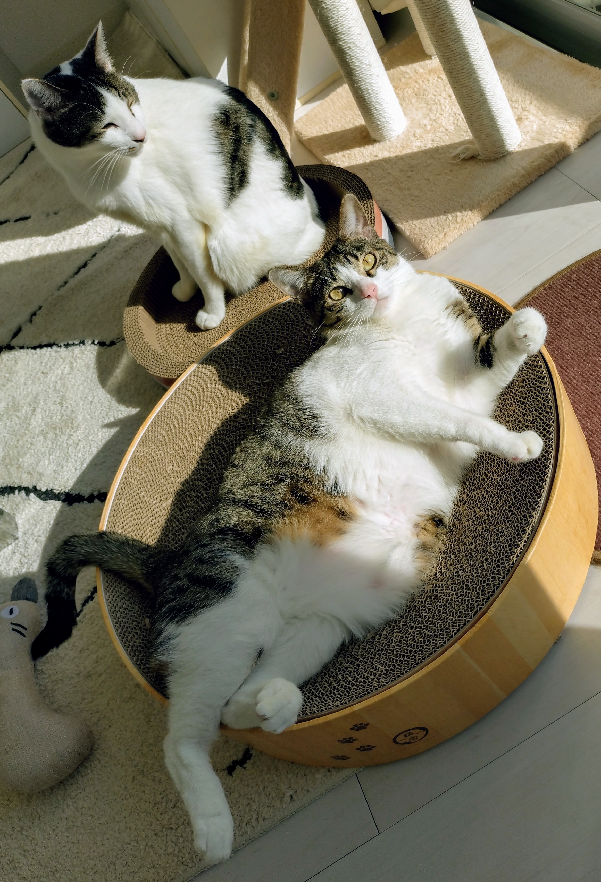 デカいしろニャンが、小バリバリボウル😹小柄!?はなニャンが、大バリバリボウル😹おかしいニャー 狭いニャー はなニャン交代してニャー😾はなニャン交代せず、爆睡😹😹別の日、 サイズどおりバリバリボウルに収まる2ニャン😹😹お日さま浴びて ゴロンニャン♪💤💤💤いいニャンべぇ〜〜💤💤💤平和だニャ〜♪ニャンニャン♪♪みんニャ 暖かくよい1日をお過ごしニャ〜😽😽