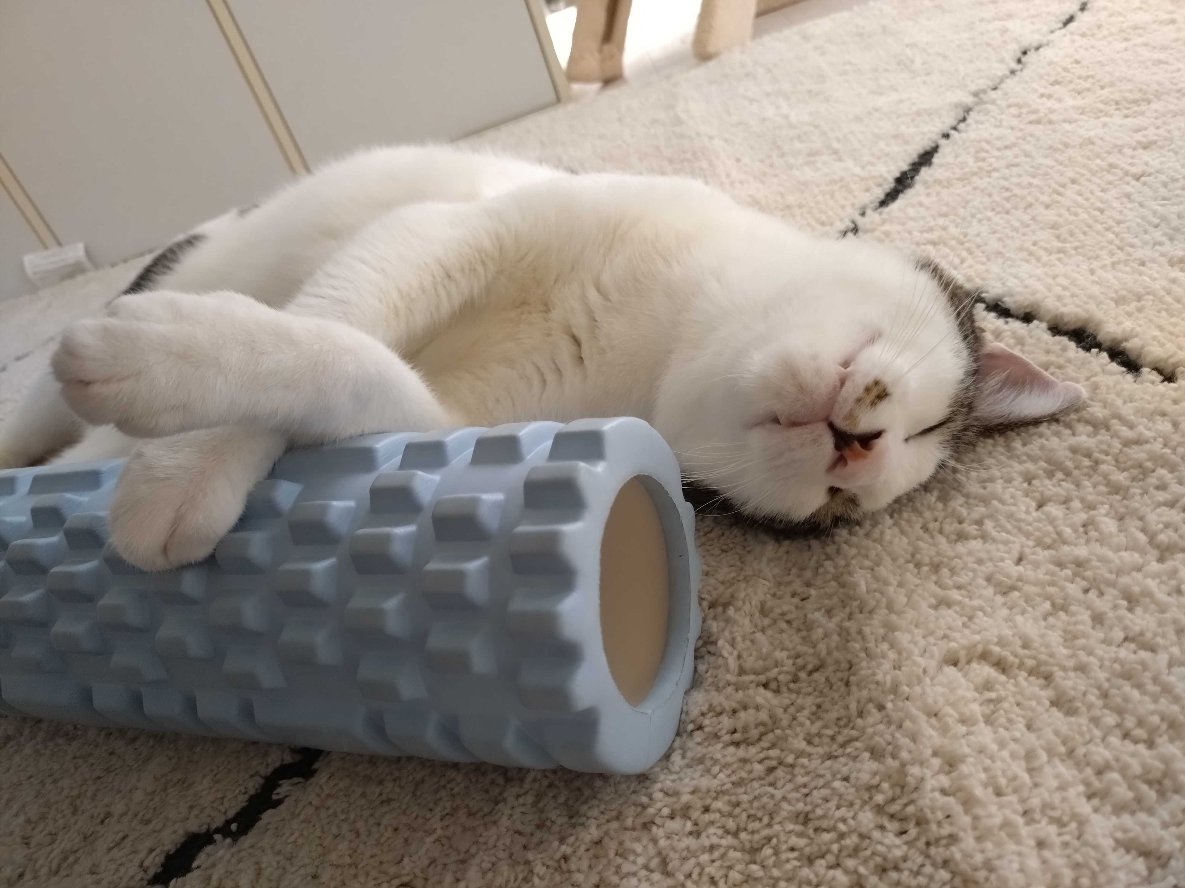 筋膜ミニローラーと添い寝💤💤💤😹😹ゴロンニャ〜しろニャンvs筋膜ローラー😹😹スヤスヤ寝ながら手足をほぐすニャ〜😹😹みんニャも、筋肉ほぐして良い一日をお過ごしニャ〜〜〜〜〜😽😽バイバイ🐾🐾👋👋