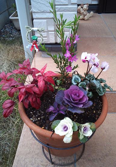 お正月っぽい寄せ植えにしたつもりですがどうでしょうか?
