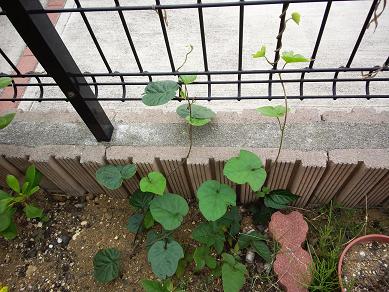 毎年ブラックベリーのつたで日陰を作って夏の日差しから暑さに弱い花を植えてますが、去年からつたがあまり伸びなくなったので、他のつるが伸びる植物を植えています。 去年はパッションフルーツを植えました! 今年は朝顔にしました。早く植えて置かないと伸びないかな?と思い植えました!少し伸びて来ましたよ!