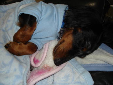 みっくすさんが送ってくれた うちのワンズとは似ても似つかない~かわいい~ダックスちゃんのあったかピロー♪ 体長約32cm 胸囲29cmのカニンヘンです頂いた時に紹介したらみなさんのどんな感じ~?ってコメントが多かったので~みっくすさんありがとうの感謝も込めて~シエルとブランがどんな感じだったか~をお伝えします~みっくすさん遅くなってごめんね~まずは使用方法~カニンヘンちゃんのお腹のマジックテープをあけるとぉ~ 中に見えているのが、オレンジのビニールに入ってる保温剤~割と固いビニール入り~ これちゃんと考えられていて~!この保温材の大きさに対して、オレンジのビニール左側少し大きくなっています。これは、レンジでチンした時、熱いので、持つ為に大きめになっています~ 実際、それは便利でした~チンする時はこのオレンジのビニールに包まれた保温材を丸ごと電子レンジに入れて下さい~チンしたら、カニンヘンちゃんのお腹へたたんで入れます~これでぬくぬくカニンヘンちゃんの出来上がり~さて、シエルとブランはどんな反応をしたのでしょうか・・・・・?衝撃の写真をご覧下さい~ ブラン・・・・失礼ながら、お尻からご挨拶。。。。シエル・・・・耳カミカミ・・・ お腹側のマジックテープをはがそうとしてみたり~あまりの手荒な歓迎に~慌ててお椅子にカニンヘンちゃんを避難させた私~しばらくすると・・・・・・シエルがハウスで寝始めたら~珍しくブランがひとりで・・・・・ ぬくぬくを満喫しながらカニンヘンちゃんといい感じ~ そのうちぐーっすり寝始めた~ カニンヘンちゃんは下になってお目めぱ~っちりブランは良い夢みてるのかなぁ~???今もブランが独占してます~みっくすさんありがとうねーブランには妹的な存在なのかもしれません~最近よくシエルを敷布団にしてブランが上に寝てたりするので~たまにはシエルを開放してカニンヘンちゃんと寝て欲しいなぁ~っと願ってみる私でしたっ☆