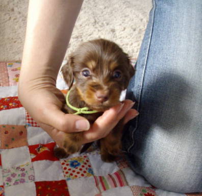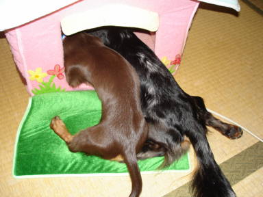 ブランが家へ来る事になって~初めてブリーダーさんのところで抱かせて頂き~ 生後29日まだ姉弟たちと離したことがないので~っとひとりだとキューキュー鳴いていたブラン。すぐに姉弟たちを連れてきてもらって一緒にお団子になっていた~ ブリーダーさんが「姉弟たち一緒の写真撮りますか?」っと言ってくださり~写真撮ろうとしたけど~お団子で何がなんだか~っと困ってたら~手馴れた手つきで4匹一斉に抱っこして下さった~イチバン右がブラン~ あとはみんな姫たち~シエルはペットショップで購入したし、ブリーダーさんは九州宮崎だと聞いて~兄弟ってどうなってるんだろう~っとシエルの血統書も出してきて~改めてよく見てみた~ シエルの犬名は アエロライト オブ ピーピー ハウス ジェイピーAで始まる名前なので、お母さんは初産ですね~☆血統書の裏の左上(JKCの場合)登録日の下に出産頭数と登録頭数が出ているのねーー!初めて知った~シエルはオス3頭とメス1頭の兄妹らしい~なんか感激!だって、シエルは仔犬の時も知らないし~兄弟がいるだろうけど、どうなってるかなんて全然わからなかったから~ ボクも感無量ですよっ 時代劇とシエル~爆足長く見えるねぇ~ブランは親戚さん探しサイトに登録して~遠~い縁ながら親戚さんがいらして~ブログに遊びに伺ったり、遊びに来て下さったりしているけど~シエルは登録していなかった~!!!よしっ!っと気合を入れて昨夜登録してみたーーーーみなさんもご存知ですか~?親戚さん探しサイト色々なところがあるけど~ダックスフンド専用親戚さん探しサイト Dachs DB他は登録して親戚さんが見つかるまで時間がかかるんだけど~ここは入力後すぐに登録しているわんこの中から親戚さんをピックアップしてくれるのぉ!でもブランの時は中々兄弟まで近い親戚は見つからず~○○くんはブランくんのお父さんのお父さんのお母さんの孫です。みたいなそれでも同じチョコタン親戚さんのところとお知り合いになれたりしてうれしかった~登録頭数5618匹中 ブランの親戚さんは64頭~シエルはどうかなぁ~??シエルは17頭しか登録がなかったぁ~でもでも!○○ちゃんはシエルくんのお父さんの子供です っていう異母兄弟が見つかったぁ~!!今まででイチバン近かったですっそしてこの17頭の中にワイアーのわんこが一匹。シエルくんのお母さんのお父さんのお父さんのひ孫??? ロング、ワイアー、スムースという毛の種類はご先祖さまが同じなの????ロングはロングの血統からなっているのでは???っと疑問~それとも飼い主さんの入力1桁間違いとかかなぁ???ダックスの長い歴史の中で、今は禁止されている交配とかがあって、シエルも目がブルーアイに出てしまったりしているんだろうけど~とにかく、健康でいてくれればうれしい限り~これからも新しい親戚さんをチェックして親戚づきあいを深めよう~っと思ってみましたあ、ここのサイト同じ名前のダックスちゃんが他にいるか~?とか、同じ誕生日のダックスちゃんも検索出来ます~みなさんも親戚さんに留まらず~仲良しさんの輪を広げてみて下さいね~