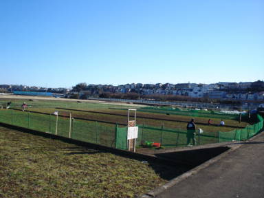 人間だけでお昼を食べ~お茶しに寄ろうと思ってわざわざ行った初めてのドッグカフェがーーーーーー2時がラストオーダーで夜の営業まではクローズするとわかって~それならドッグレストランとかダイニングとか書いてくれれば良かったのにぃ。。。。っととぼとぼ帰る途中~通りがかりに不思議な光景?! 田んぼに囲いがあって、その中にちっちゃ~いわんこが遊んでいた近くに車を止めて~みてみると・・・・・・・・ 地主さんのご厚意により、たんぼを使う春までの間~無料のドックランとして開放してるんだってーーーー!通りかかったのも何かのご縁~?!っと利用させて頂いた~ 入り口はこんな感じ~手作り感 満載~敷地は遠くから見た時よりずっと広~い 最近シエルはお友達がいないとボール遊びや走るってことをしなくなった~ おとなになったのかなぁ??いっぽうブランは・・・・・・ ご存知ボール狂ひとりでだって、ボール命 やっぱりこんな感じ~汗でもこの日は~遠くにいたわんこに興味を示し~ボールをくわえたまま走りだしたので~慌てて追いかけて行ったら~ご挨拶することなく、ちょっと離れたとこで、ボールを口に入れたまま~「ワン!」ってほえた~あのぉ~しつけ教室のお勉強の成果はいつ出して頂けるのでしょうか?しばらく遊んでドッグランを出たら~あぁ~私達の身近じゃない田んぼをあなどってましたっ!靴の裏にもシエルとブランの足もすごい泥で一杯~洗えるところもないので、ウエットティッシュで拭いてみたけどっ泥が凄すぎて~拭くだけ無駄っっということで・・・・・こんな感じ~ 泥が凄すぎて車のシートには上げられないので~下でおすわりっ 近くの公園を探してGO 無事お水までたどりついて足洗えましたっ靴底の土もすごかったぁ~でも面白いとこで遊べたね~