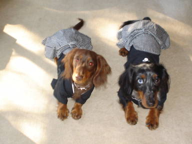 昨日~jamさん からお荷物が来たんだよ~なんだなんだっ!!っとシエルとブラン~ この必死さから見るに~きっと中身はおいしいものに違いないっ やっぱり~☆私やシエル&ブラン用の美味しいものがどっさり中でも~この3色チョコの柿の種~ あんまりかわいいから~ひとつ開けて食べちゃった~甘さとおかきの塩気とが絶妙のバランスで美味しい~見た目にも楽しめるよね~それからそれから~わんこの讃岐うどん 初めて見ました~!!すご~い私も食べたい感じ~ここまで来てふと気が付いた・・・・・私jamさんから何かもらう心当たりがない・・・・・あれぇ~?!もしかしてもしかして誰かと間違って送られてきたって事はない??ふと開封してしまった、チョコ柿の種をじっと見る。。。。。だとしたら~!!柿の種1個だけだけど食べちゃったらイケナイーーーーー!なぜこんなに私が焦ったか・・・・・それは・・・・・うちの子達用でないようなお洋服が入っていたのです・・・・・!慌てて柿の種1個食べちゃった申告と間違いですか~?メールをjamさんに送った私~幸い~間違いなくうちに送ってくれたんだって事~荷物出してから書いたお手紙が入れ忘れられてお家にあった~!!っと気が付いたんだって~っという事で~じゃーーーーーーん!突然ですがっ!うちに新しいわんこが来ることになりましたっ!もう名前も決めたのよっ☆察しの良い楽トモさんならもうおわかりですね~ ←この子~我が家に初の女の子~ シエ子ちゃん あ、どもっ女装も中々いけるでしょ~?これ桜ちゃんが着る予定だったんだけど、ちょっと大きかったんだってーっということで~jamさんの期待に応えてみました~やっぱり~大きい子がスカート履いてると女装だよね~jamさ~ん 桜爾くん 桜ちゃん 桜龍くん♪ たくさんありがとう ブランが仔犬だった頃は~って今も一応まだ仔犬だけどさっ。もっと小さい時は~お散歩でよく「あら、出産されたんですかぁ~?」っとシエルはママ呼ばわりされたものですっ。今後はこれを着て~「生んだんですのよぉ~」っと言ってみよう!jamさんありがとう