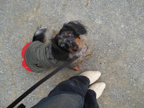 シエルは~大きなホームセンターの中にある~大きなペットショップで売られていました~ペットショップ自体は大きいのだけれど~わんこの入っているケースはそう大きいワケではなく~ひときわ窮屈そうにカラダを2つに折り~入っていたシエルをそこへ行くとよく思い出します~ 私が授業へ行っていた土曜の午前中とかに~何かを買いに来たついで~にペットショップも覗きに来ていたらしい~旦那さん片目だけが青くてなんだか目つきが悪いように見えるシエルがペットショップへ来た頃も見ていたらしい~しばらくして行くと~まだシエルはいて~どんどんケースの中で大きくなり~まわりはみ~んな小さいわんこでその大きさもひときわ目立つのに、誰か飼ってくれるのかなぁ???っと心配していたらしい~ シエルを初めて見た時から数ヶ月たって~帰宅した私に急に「まだあの子いたよ。。。。売れないんじゃないかなぁ~・・・・」っと突然言い出す旦那さん~んん?一度だけ見たその子を何度もひとりで見に行ってるなんて全く知らなかったワタシ~突然あの子って言われても・・・・?隠し子ですか?よくよく話を聞くとわんこの事らしい。。。。海外転勤が多く~子供時代に猫以外のペットを飼った事のない旦那さん・・・そうは言っても・・・・とは思ったけれど見に行ってみて~小型犬とわかり少しホッ抱かせてもらうとお手てはぶっといし~どしっと重いし~(生後半年で5.2kg)まだ大きくなるかも~っと遠慮げに言う店員さん~おとなしい~感じだったけど、しばらくするとちょっと元気になってきて~放されたゲージでジャンプし始めた・・・・この時店員さんが「おっ。テンション上がってきた?ん?楽しいねぇ~ダプちゃん」っと言った一言を聞き逃さず~のちのこのやんちゃなシエルを想像しなければいけなかった~あ、ダプちゃんとはダップル(毛色)なので、そう呼ばれていたらしい~呼び名がつくほど長居していたのねぇ~初めてわんこを飼う小学生みたな旦那さんだったので~わんこを飼ったら、お散歩や旅行も大変だし~と色々言ってみて~とうとう家へ来ることになったシエル~ うちなんて留守の時間が長いし~どうなることかと思ったけれど~今はうちへ来てくれてありがとう~って思ってますそんなシエルの実家?である~ホームセンターへは時々帰省~その他にシャンプーの時も帰省~ はやる気持ちを抑えつつ~早く早く~ ペットショップの店員さんやニックネームで呼んでいてくれたお姉さん達を「ママーーーーーーーー!!」っと言わんばかりにしっぽブンブン振って喜んでいるシエルを見ると~私実家に帰ってこんなに父母に対して喜んだことないなぁ~っとふと思う私でしたっ♪ 今日出番ありませんでした~の人